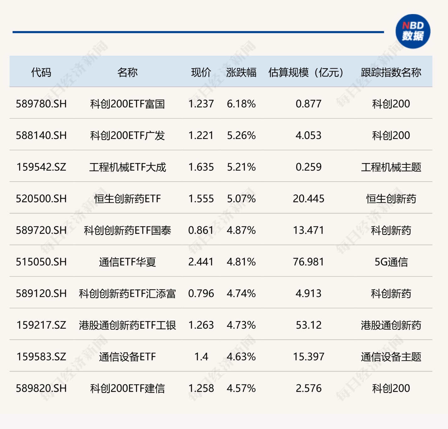 ETF涨跌幅方面,科创200、工程机械相关ETF涨超5%。